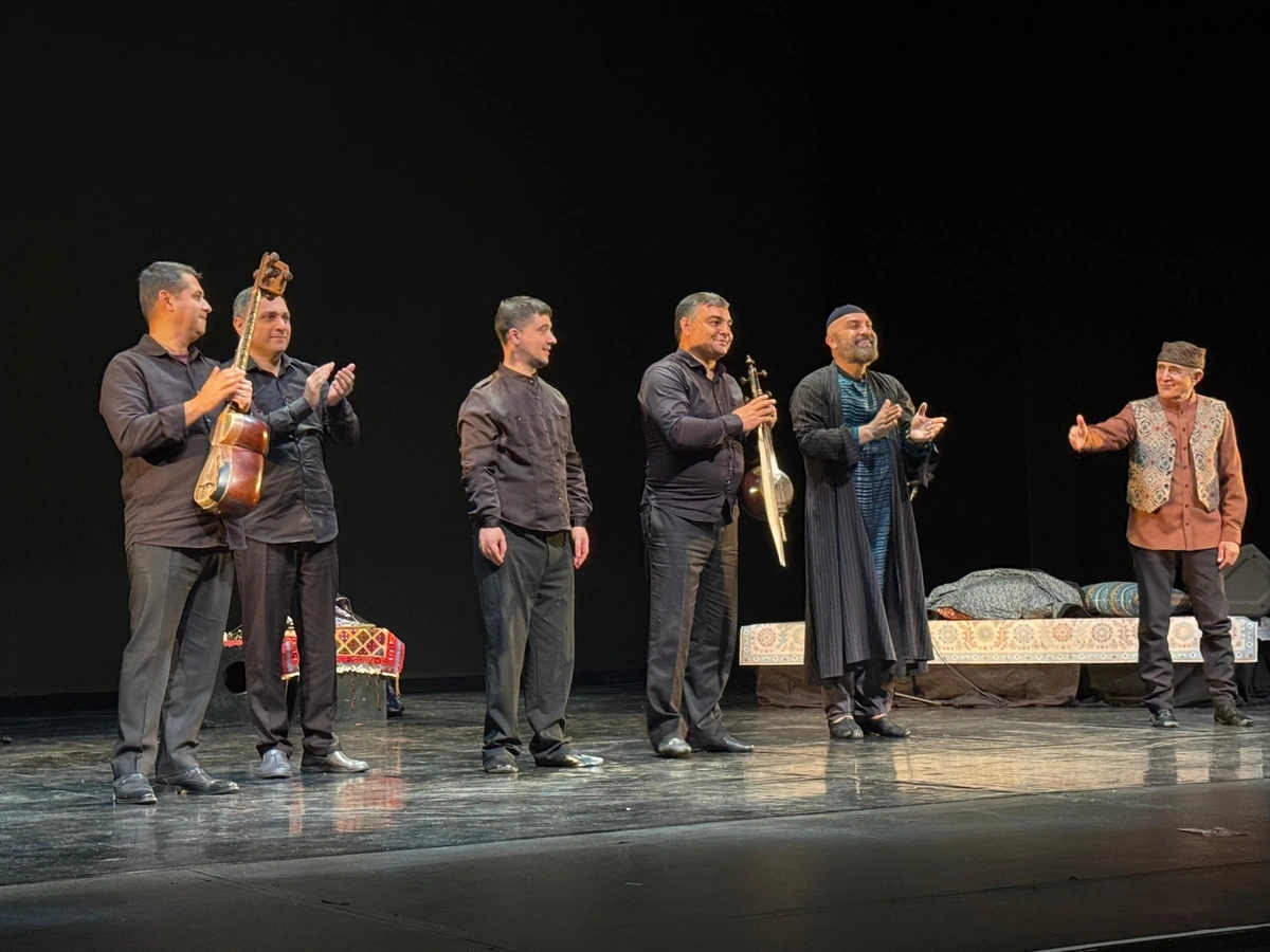 İfaçıları səhnədə xanəndənin dörd nəfərdən ibarət Muğam Ansamblı müşayiət edib.