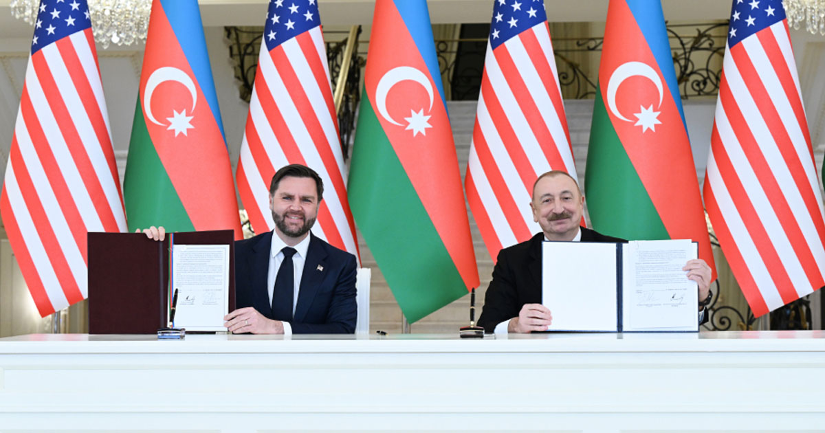 NOCOMMENT.az xəbər verir ki, sənədi Azərbaycan Respublikasının Prezidenti İlham Əliyev və Amerika Birləşmiş Ştatlarının Vitse-prezidenti Ceyms Devid Vens imzalayıblar.
