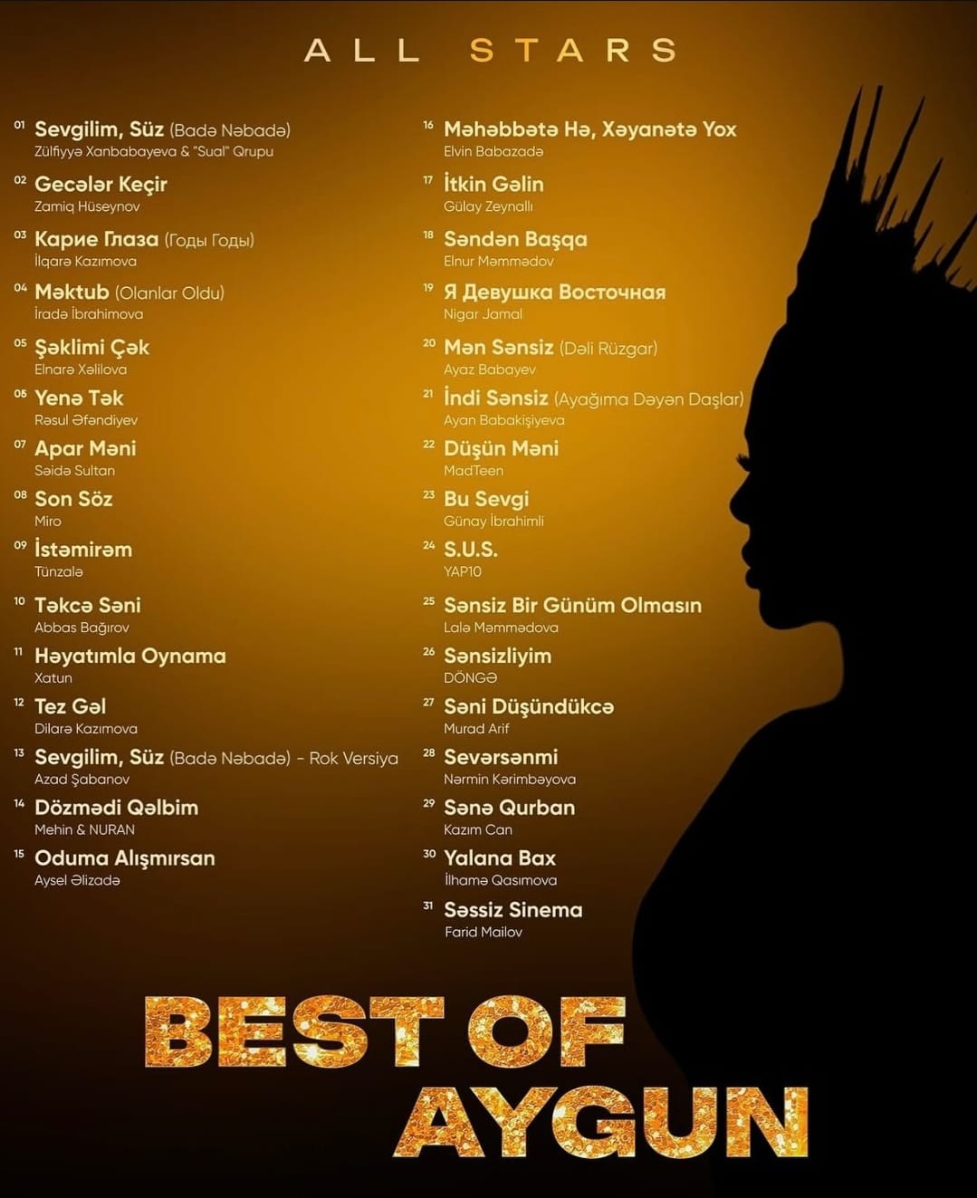 “Best of Aygun – All stars” adlı alboma daxil olan ifaçılar arasında Xalq artistləri Zülfiyyə Xanbabayeva, Tünzalə Ağayeva, Əməkdar artistlər Lalə Məmmədova, Abbas Bağırov, müğənnilər Zamiq Hüseynov, Günay İbrahimli, Gülay Zeynalova, İlhamə Qasımova, İradə İbrahimova, Səidə Sultan, Miro, Azad Şabanov, Aysel Əlizadə, Elnur Məmmədov, Nigar Camal, Ayaz Babayev, Ayan Babakişiyeva, ModTeen, Yap10, Rəsul Əfəndiyev, Elnarə Xəlilova, Dilarə Kazımova, Elvin Babazadə, Murad Arif, Nərmin Kərimbəyova, Mehin Hümbətova və Nuran, Kazım Can, Fərid Mailov, Xatun Əliyeva və “Döngə” qrupu yer alıb.