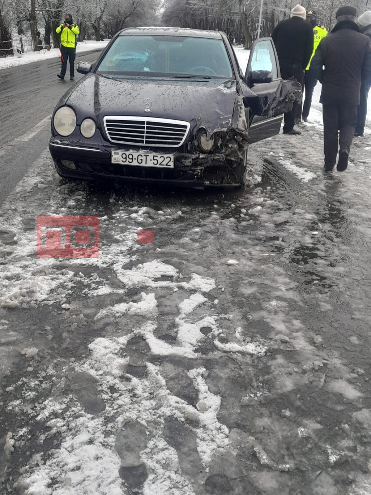 Oğuzda buzlu yol qəzaya səbəb olub.