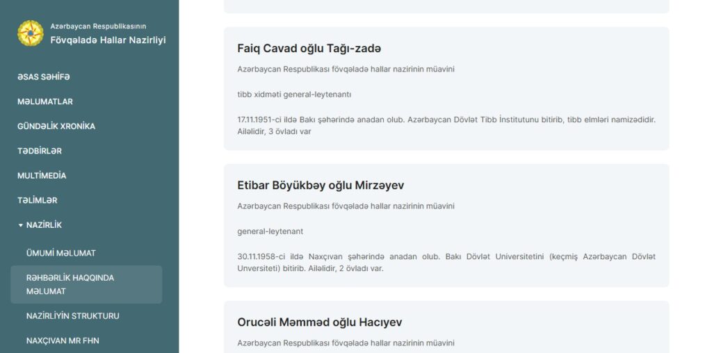 Bundan başqa, FHN-nin rəsmi saytında da dəyişiklik edilməyib. Nazirliyin rəhbərlik bölməsində Faiq Tağızadə, Etibar Mirzəyev və Orucəli Hacıyev hələ də müavin kimi qalır.