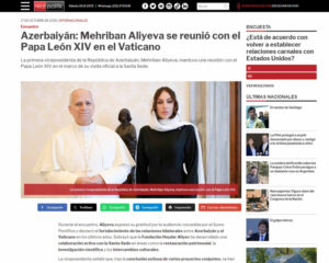 Argentinanın “Radio María” xəbər və onlayn radio portalı da Mehriban Əliyeva Papa XIV Leonun görüşünü diqqətdə saxlayıb. Qeyd olunub ki, bu görüş Vatikan ilə Azərbaycan arasında yaxşı ikitərəfli münasibətlərin möhkəmləndirilməsi yolunda mühüm bir addımdır.
