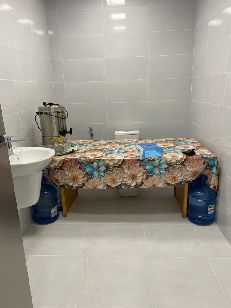 Müraciət edən vətəndaşın bildirdiyinə görə, xəstəxananın hemodializ şöbəsində yerləşən sanitar qovşaq təyinatından kənar istifadə olunur. Belə ki, sanitar qovşağın daxilində masa yerləşdirilərək mətbəx şəraiti yaradılıb, elektrik su qızdırıcısı quraşdırılıb və bu məkan faktiki olaraq yemək hazırlanan otağa çevrilib. Fotolardan da aydın görünür ki, unitazın yerləşdiyi eyni məkanda məişət avadanlıqlarından istifadə edilir ki, bu da həm gigiyenik, həm də tibbi baxımdan yolverilməz haldır.