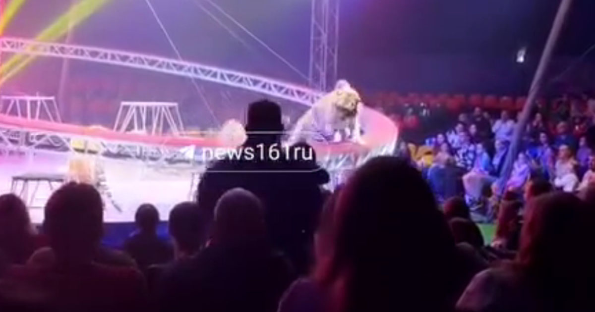 Rusiyanın Rostov-Don şəhərində sirk tamaşası zamanı pələng tamaşaçıların arasına girib.