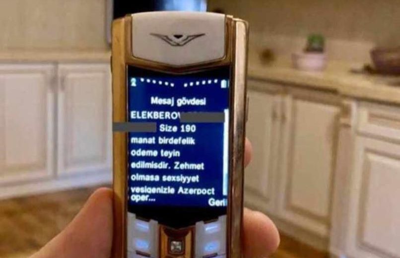 F.Talıblının sözlərinə görə şəkildə “Vertu” markalı telefonda Ələkbərov soyadlı şəxsə birdəfəlik ödəmənin təyin olunmasına dair mesaj əks olunub. Birdəfəlik ödəmənin təyin olunduğu Ələkbərov və Ələkbərova soyadlı 326 şəxsin telefon nömrələri üzərindən araşdırma aparılıb.